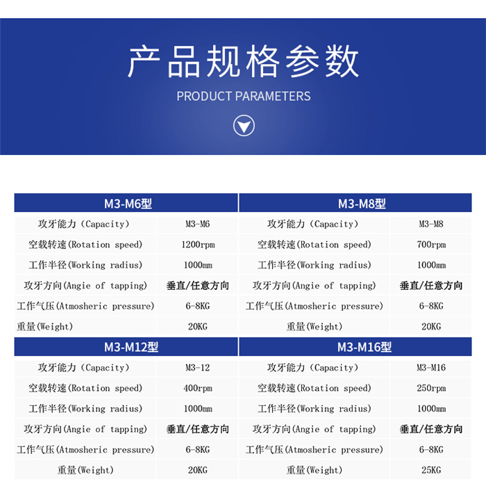 氣動(dòng)攻絲機(jī)適用領(lǐng)域:氣動(dòng)攻絲機(jī)適用于所有機(jī)械制造行業(yè),機(jī)床、模具機(jī)械、塑膠機(jī)械、印刷機(jī)械、包裝機(jī)械制造廠、工程機(jī)械、汽車摩托車零部件、航空發(fā)動(dòng)機(jī)、機(jī)車車輛、煙草機(jī)械以及通用機(jī)械等行業(yè)。