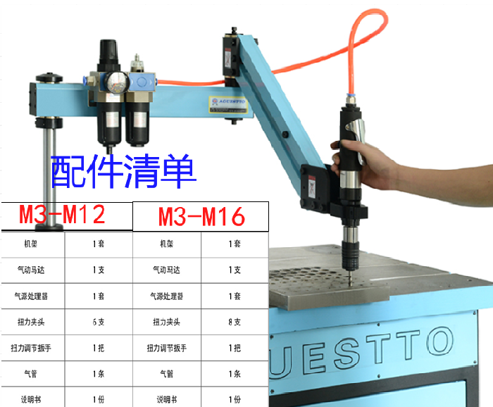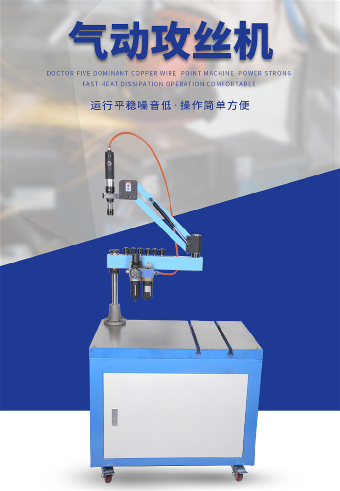 氣動(dòng)攻牙機(jī):價(jià)格便宜!經(jīng)濟(jì)!以輕便、靈活、高效以及具有其它類似設(shè)備無(wú)法取代的優(yōu)點(diǎn)。新款氣動(dòng)攻絲機(jī)避免了車床、鉆床或手動(dòng)攻絲的局限,省時(shí)、省力、不易爛牙、絲錐不易折斷等。